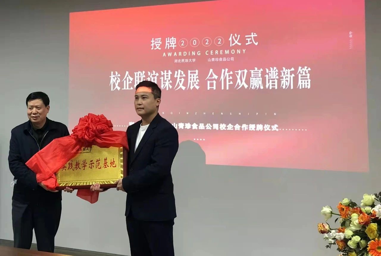 4月15日上午,來鳳縣山青珍食品開發(fā)有限責(zé)任公司與湖北民族大學(xué)在恩施來鳳縣舉行校企合作簽約暨“實踐教學(xué)示范基地”授牌儀式,恩施州政協(xié)副主席萬雪峰,湖北民族大學(xué)黨委副書記、副校長汪興平及來鳳縣山青珍食品開發(fā)有限責(zé)任公司總經(jīng)理、武漢金匯鮮商貿(mào)有限公司總經(jīng)理梁博識等各界領(lǐng)導(dǎo)和產(chǎn)業(yè)研學(xué)專家出席此次儀式。